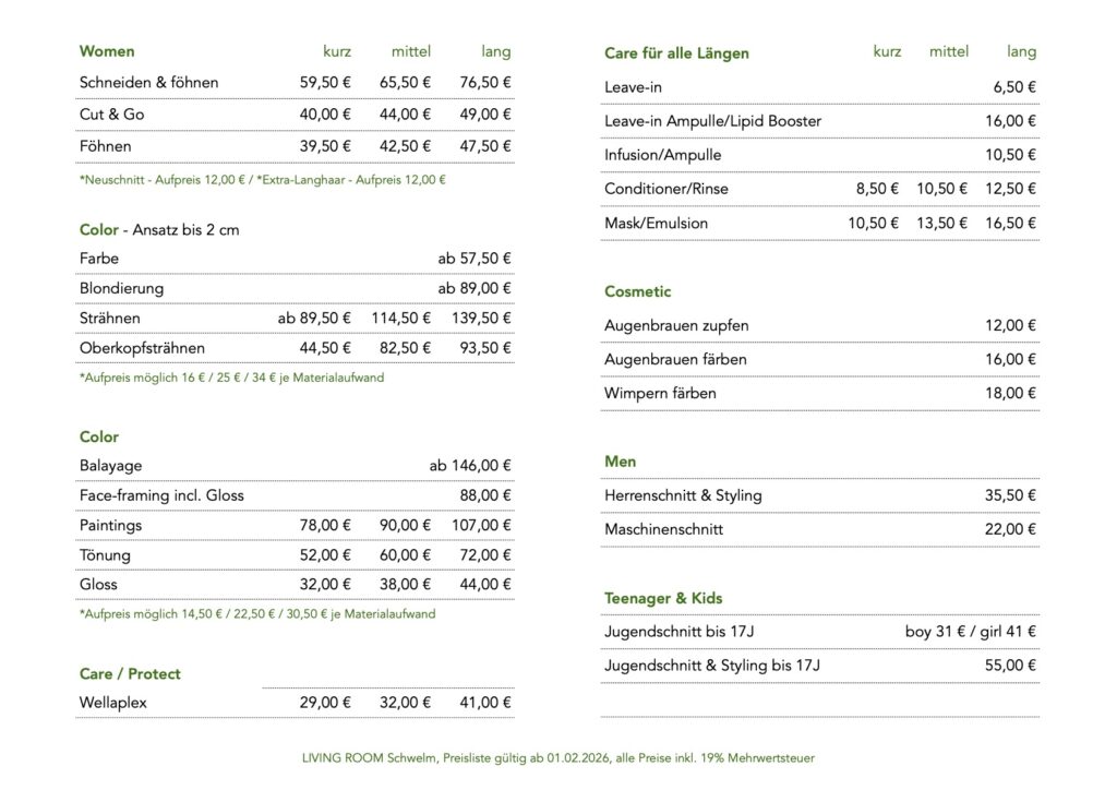 Um ein optimales Farbergebnis zu erzielen sind oft mehrere Arbeitsschritte oder Kombinationen der Dienstleistungen erforderlich. Bei Fragen sprechen Sie uns bitte an. Gerne machen wir Ihnen eine detaillierte Auflistung unserer Ideen für Ihre perfekte Frisur.